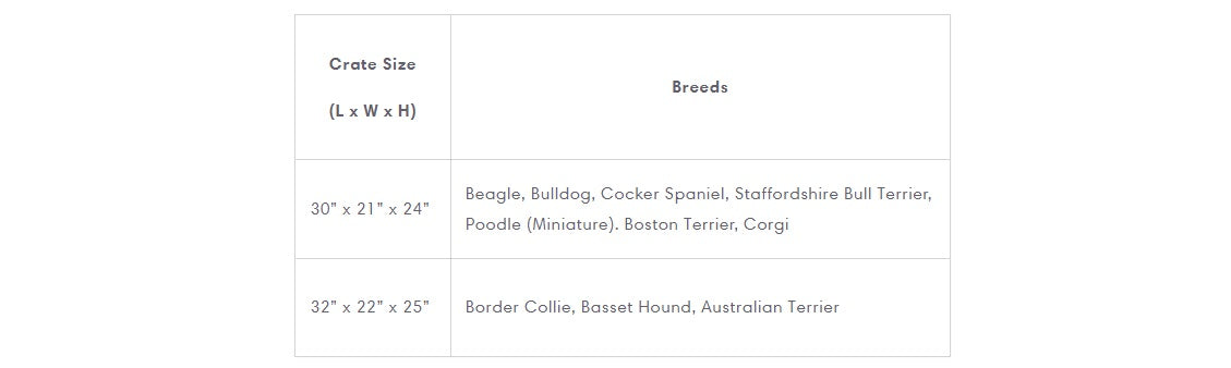 Here's a quick reference table to help you select the right crate size for your dog's breed: