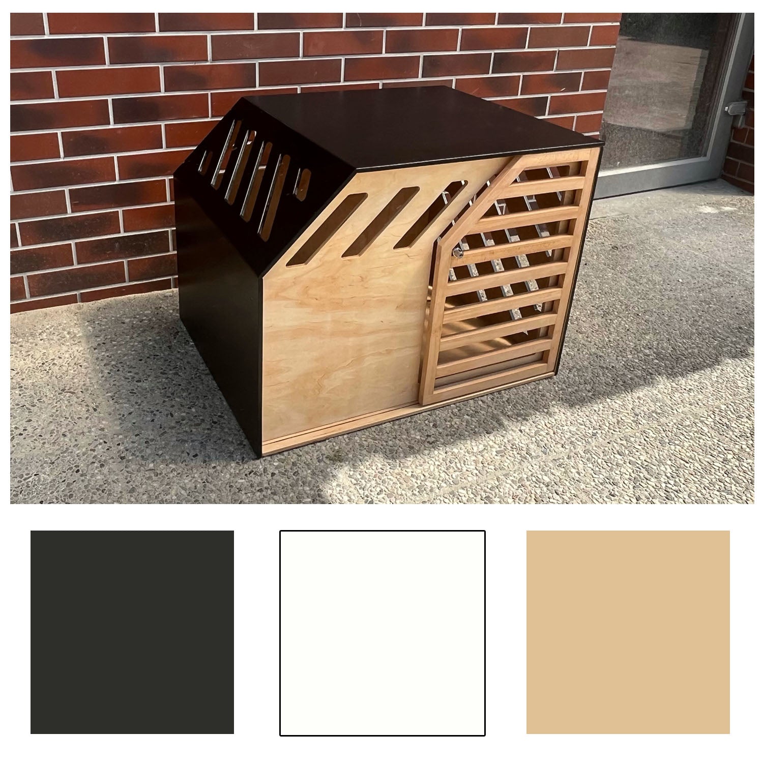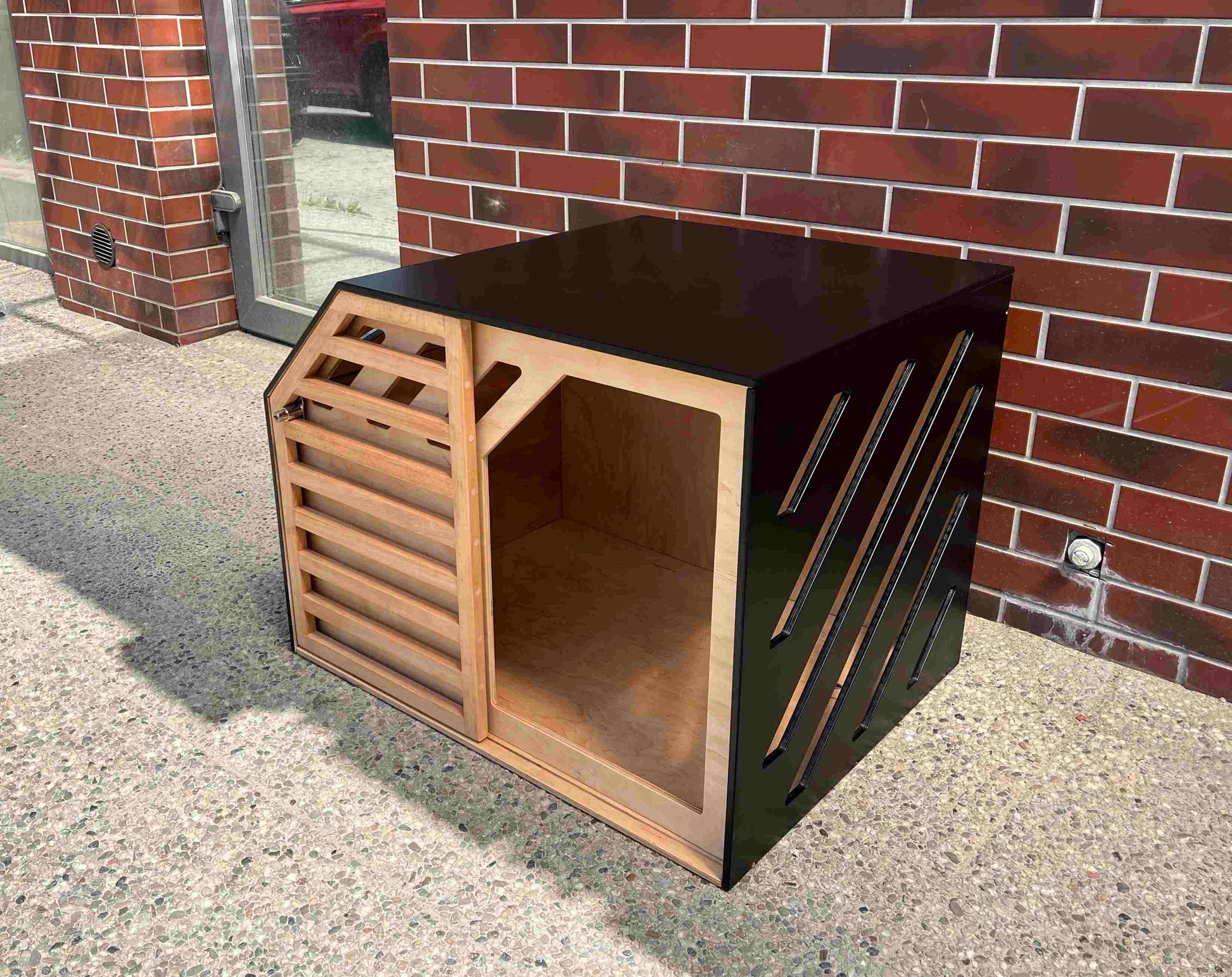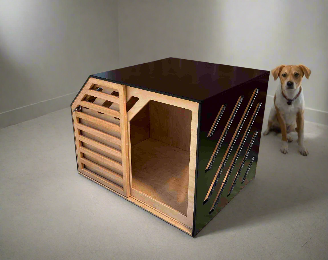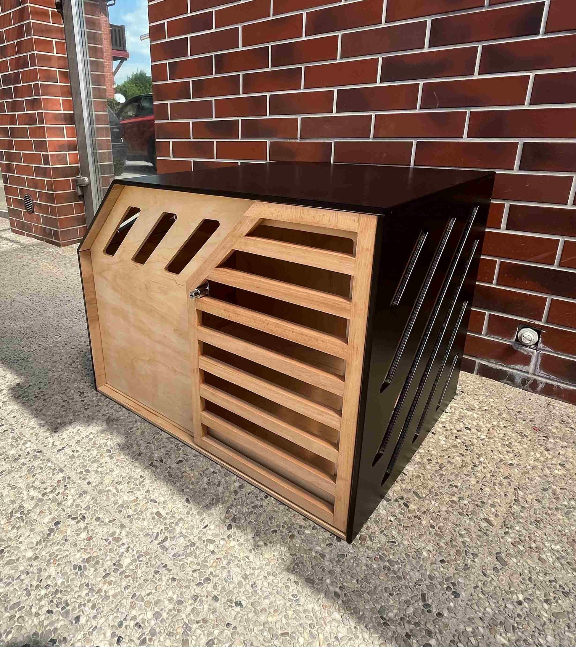 Custom Designed Indoor Outdoor Dog Crate natural+black