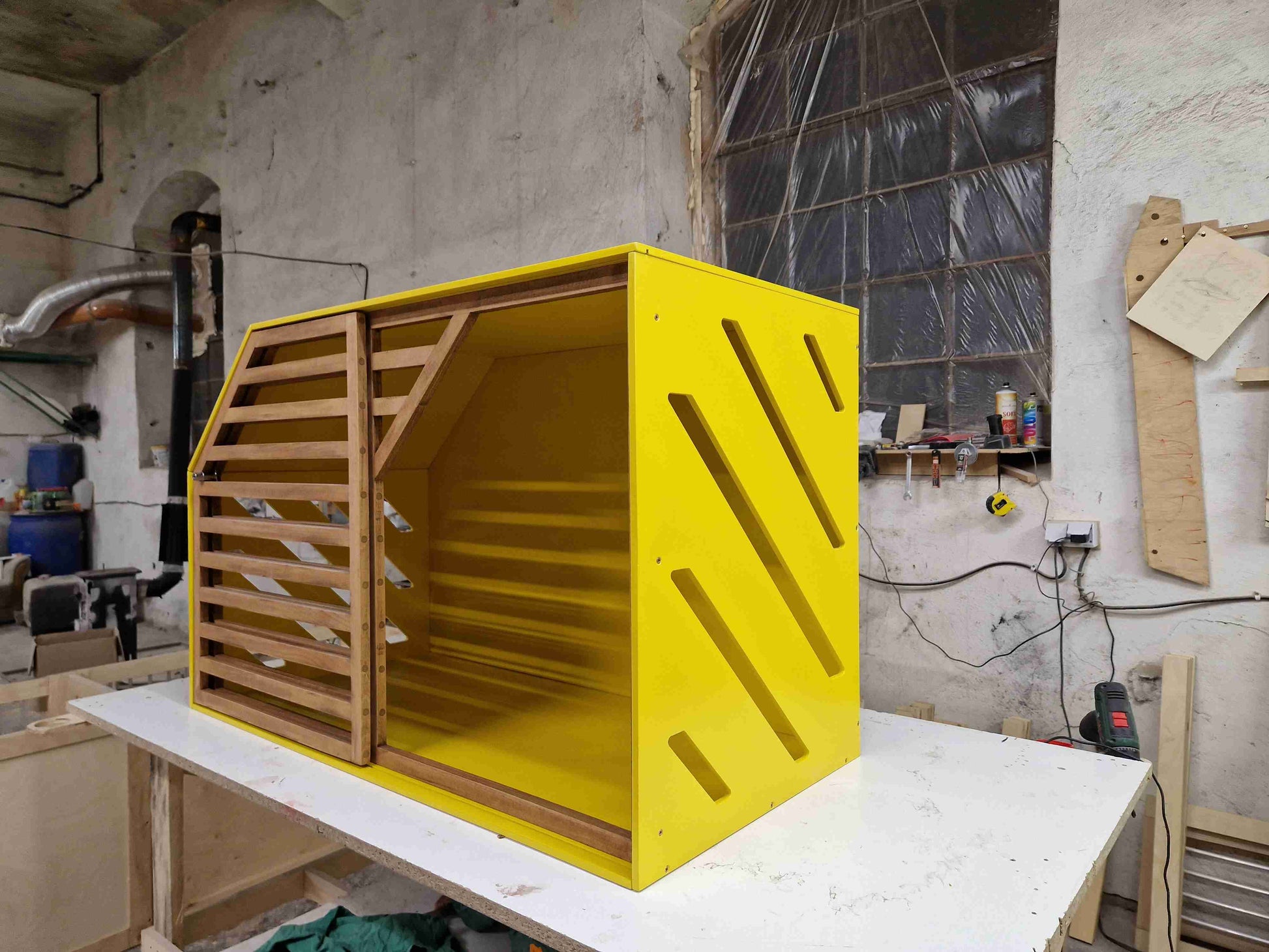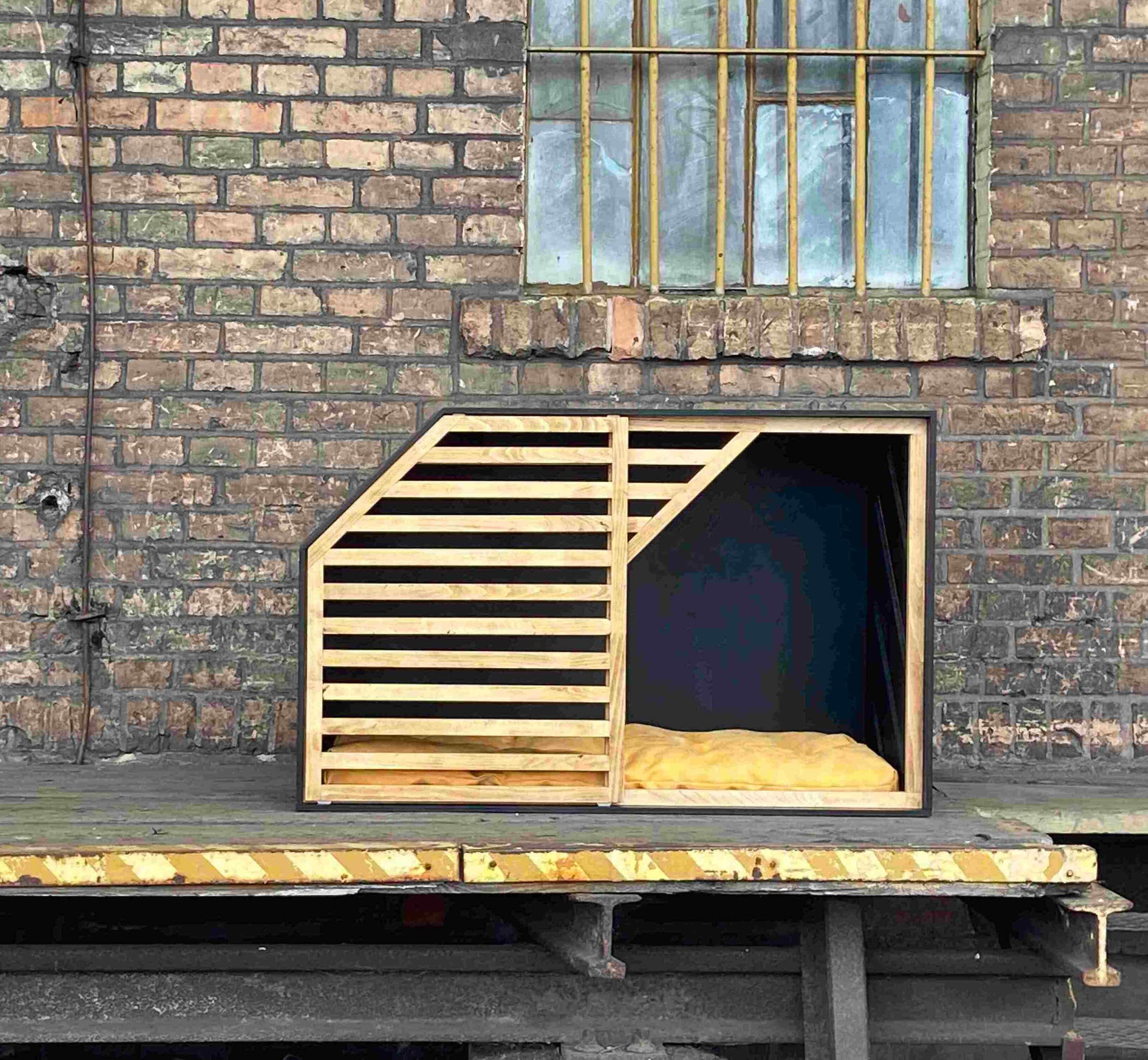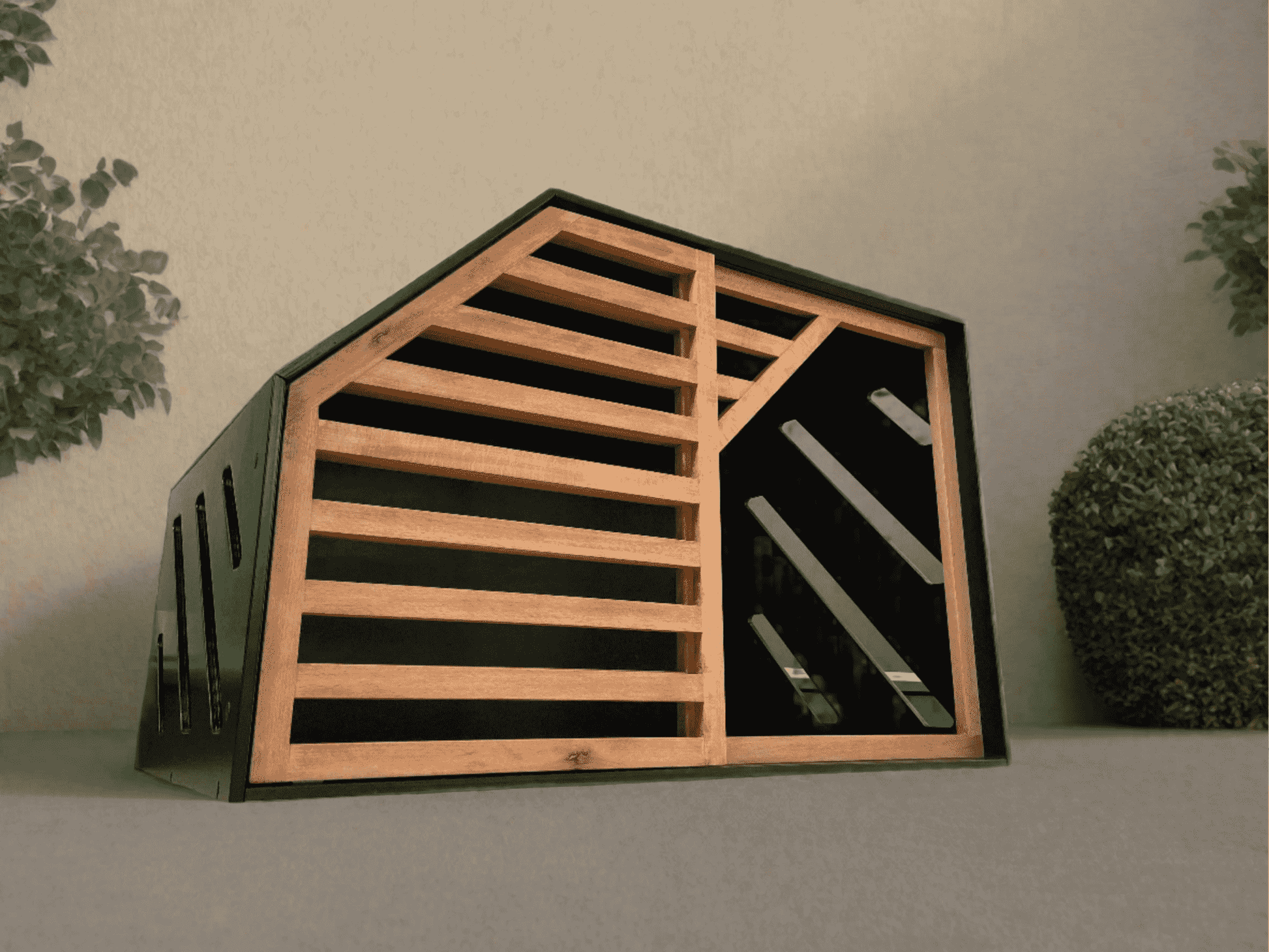 Some slots serve as ventilation holes and skylights in the construction of the houses on three sides, making the interior space well-ventilated and illuminated. In addition, the slots allow the animal to observe what is happening around him directly from his hiding place, so he feels protected and aware of what is happening around him.