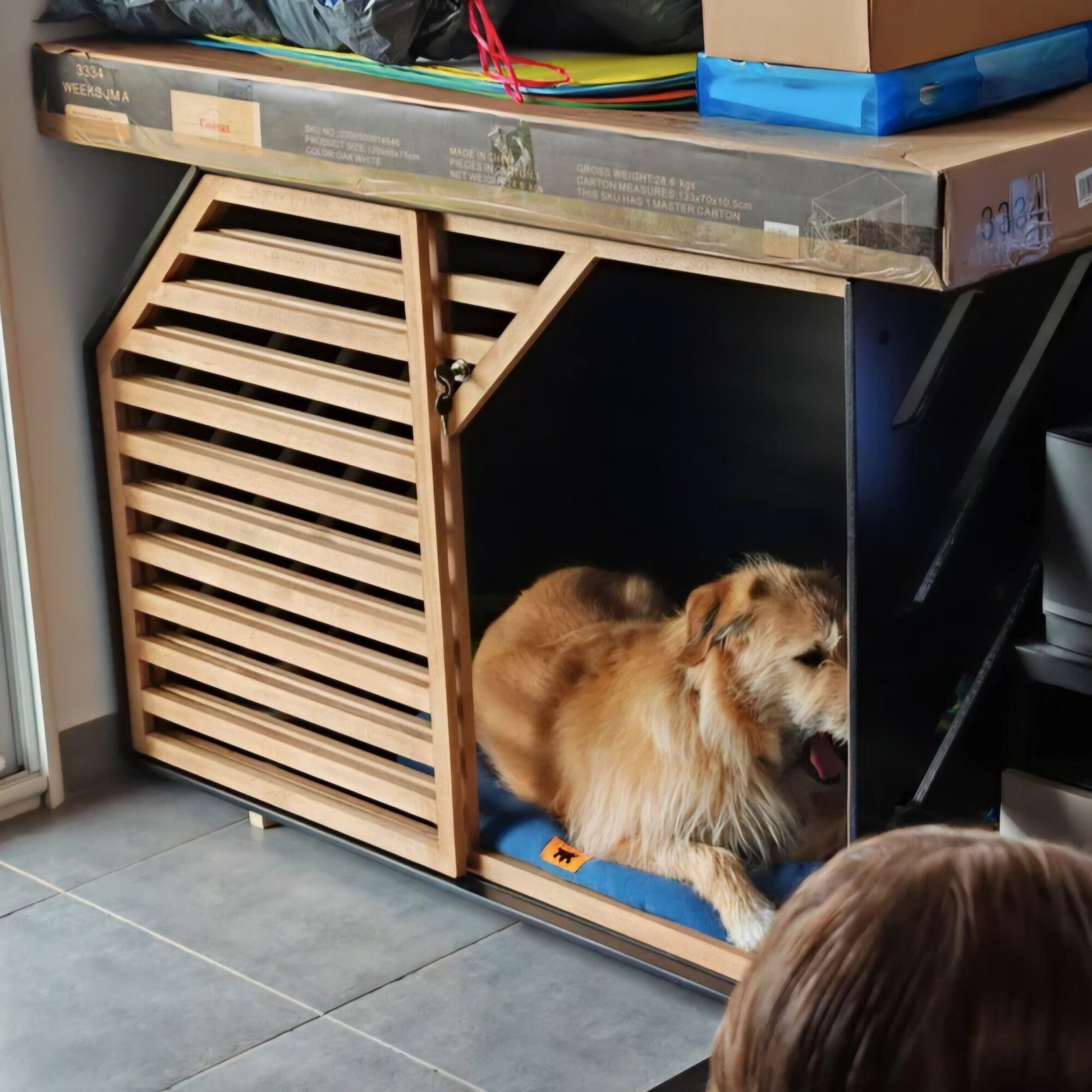 Introducing the perfect retreat for your furry friend - this amazing black dog house is ideal for style and comfort. With a cozy interior and a sliding door for easy access, your beloved pet will feel at home in their new favorite spot. Give your pup the luxury they deserve with this stylish and practical dog house that will make you and your furry companion happy.