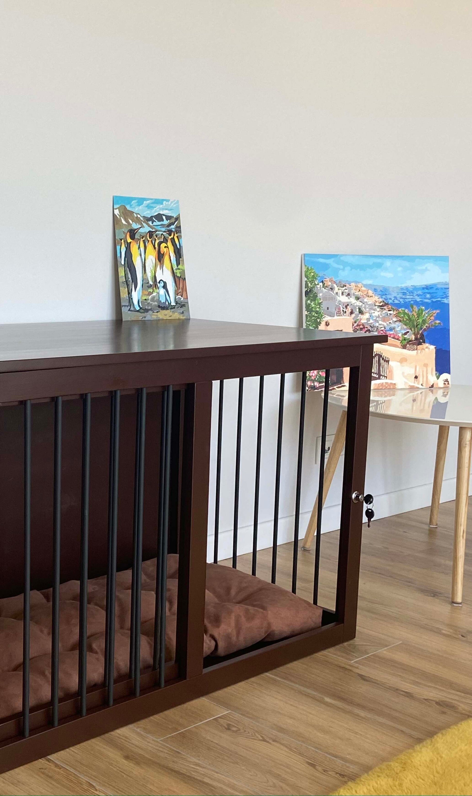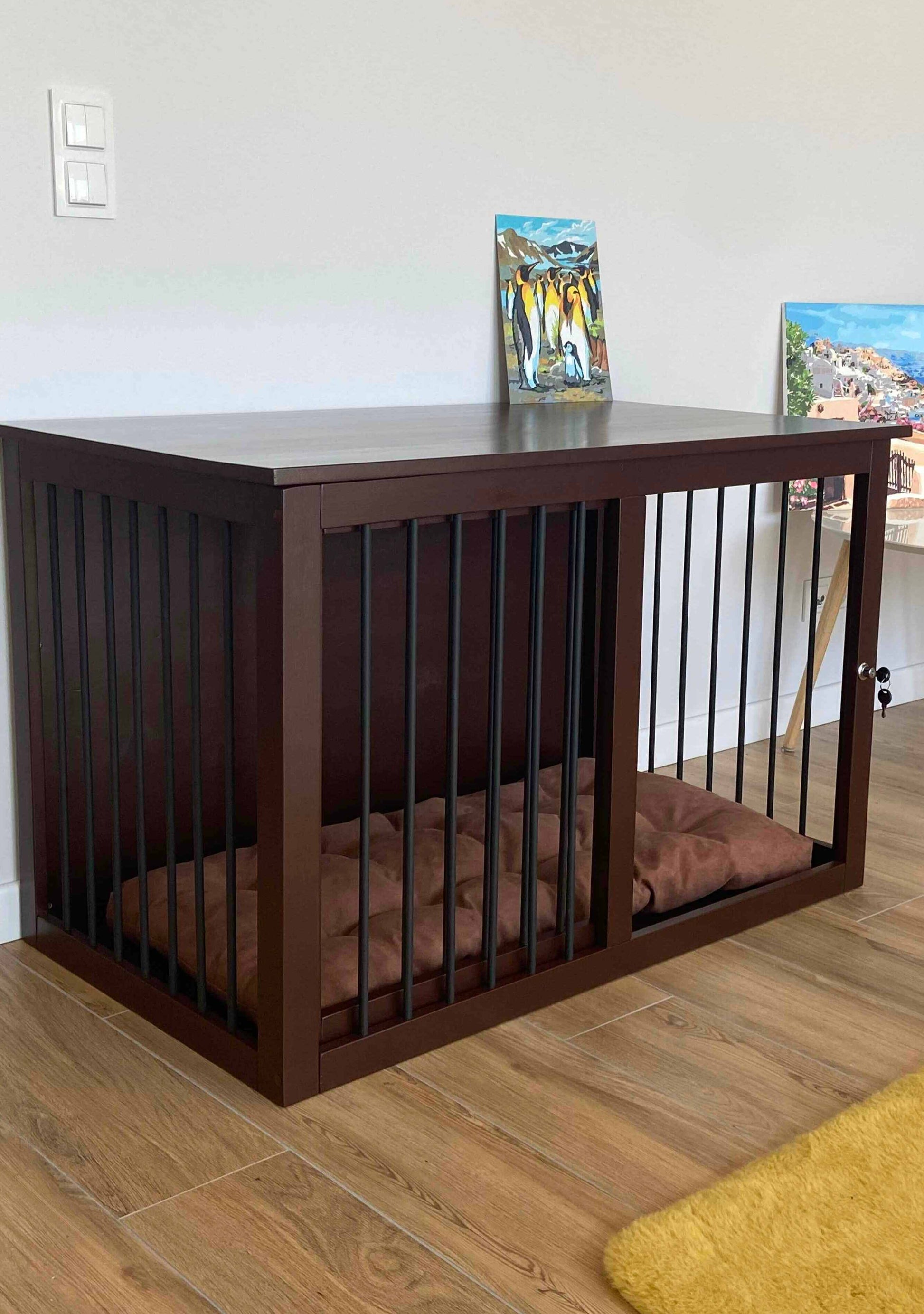 Upgrade your pup's space with our Modern dog crate furniture Moxie Brown+Black. This stylish piece offers both comfort and style for your furry friend. Its sleek design will elevate any room while providing a cozy retreat for your pup. Invest in quality and design for your beloved pet.